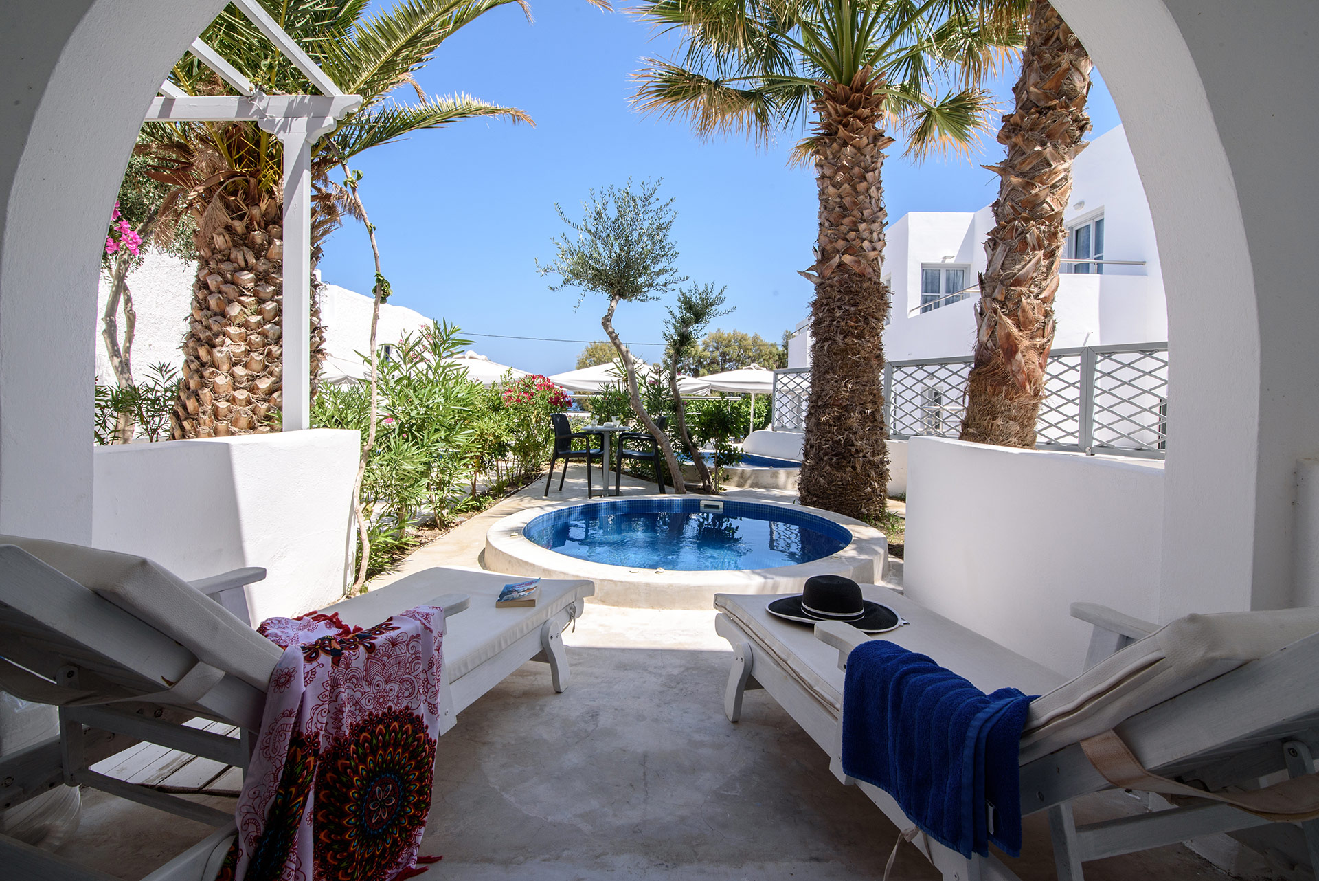 Anlage: Das kleine, moderne Hotel mit 38 Zimmern bietet einen Süßwasser-Swimmingpool mit Sonnenterrasse (Liegen und Schirme inkl. – am Strand gegen Gebühr), Outdoor Whirlpool und ein Badetuchservice. Das Hotel verfügt über 1 Pool/Snackbar und eine Taverne direkt am Meer. WLAN im gesamten Hotelbereich inkl.